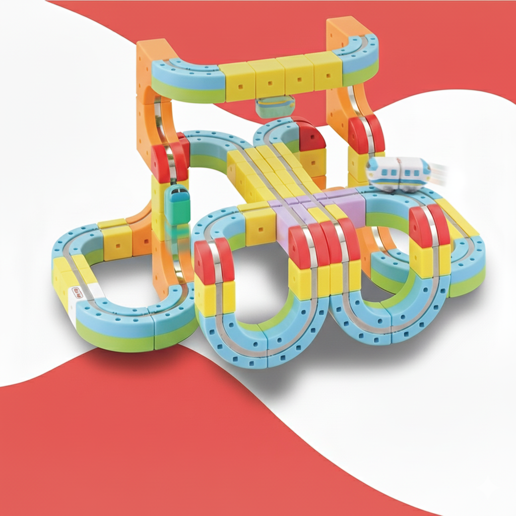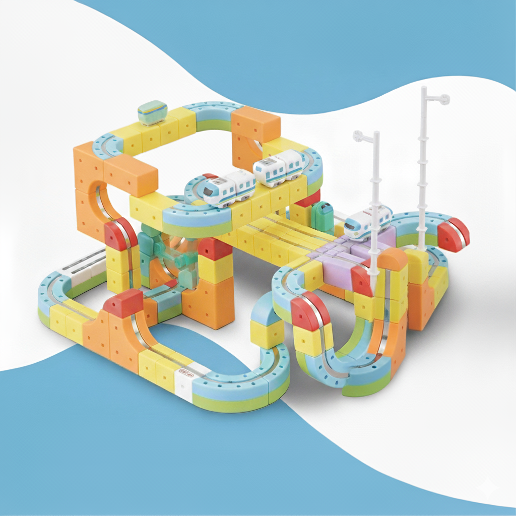Each piece snaps securely into place, allowing kids to explore balance, speed, and structure as they build towering bridges, looping tracks, and multi-level rail networks. There’s no single right way to play, only endless combinations waiting to be discovered.